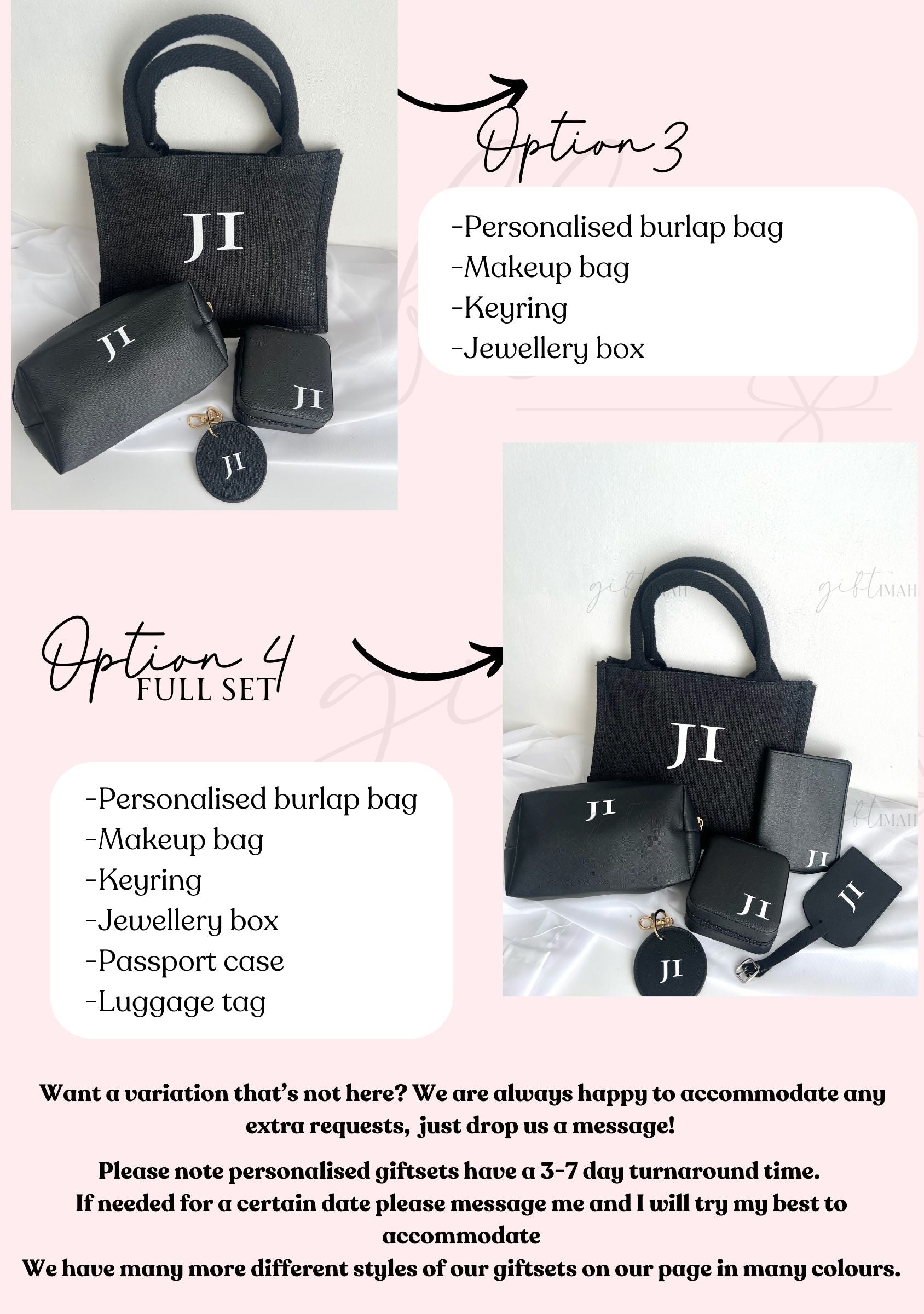Presented in a matching personalised jute burlap gift bag, this set is ideal for travel lovers, bridesmaids, birthdays, or any occasion that calls for a thoughtful, stylish gift. Every piece is crafted from high-quality faux leather for a luxurious look and feel.
