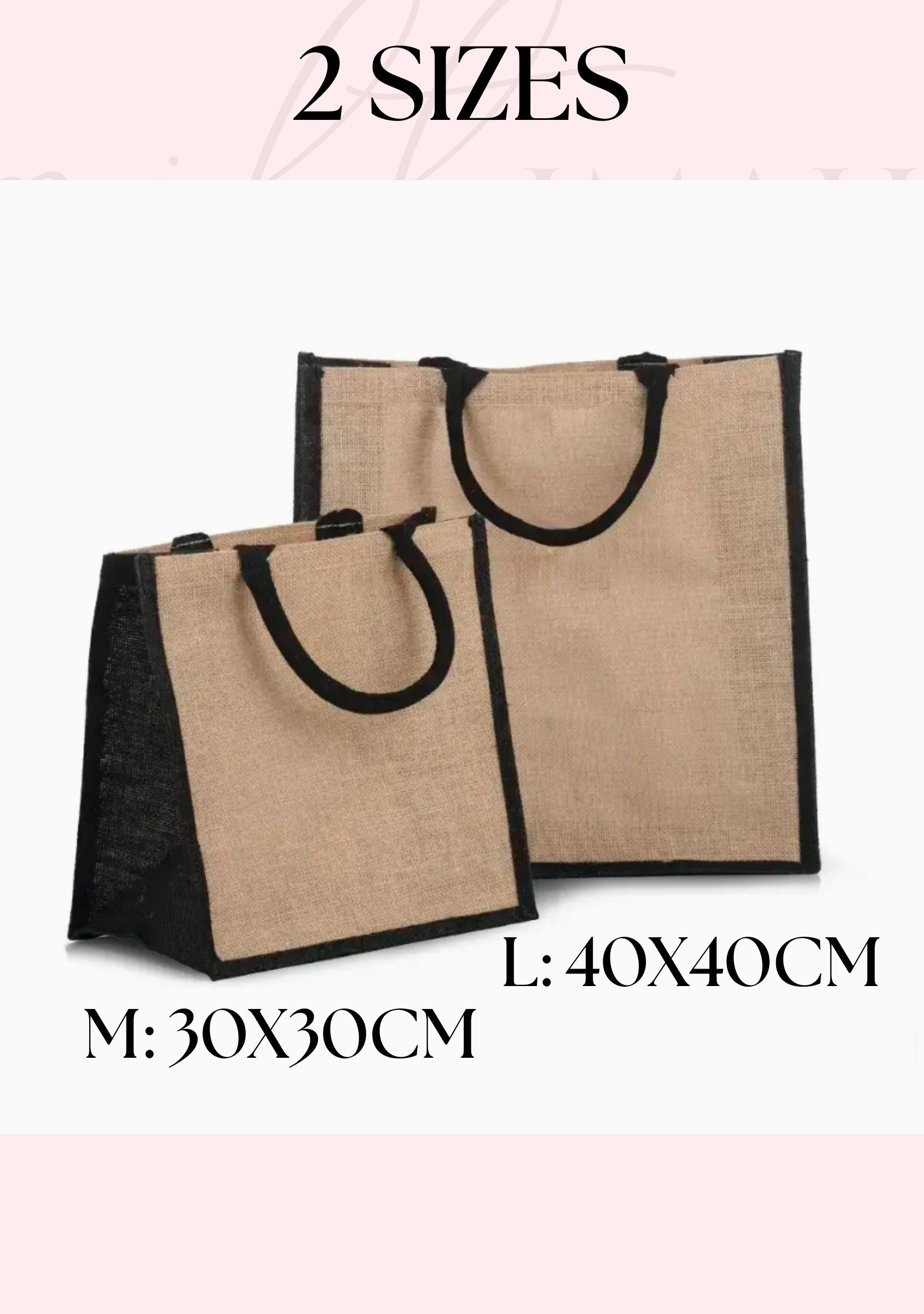Personalised Black Rim Jute Beach Bag | 2 Sizes